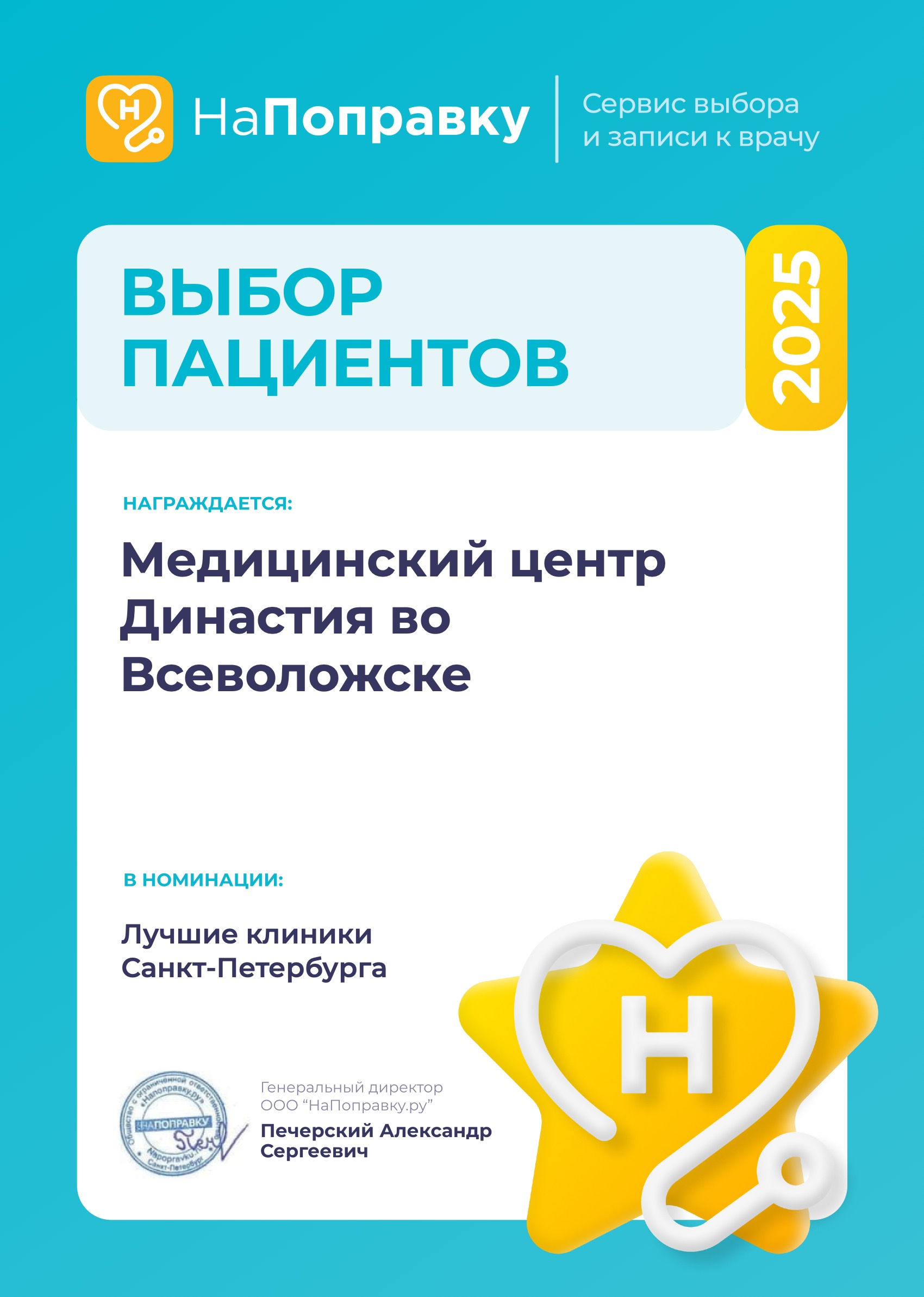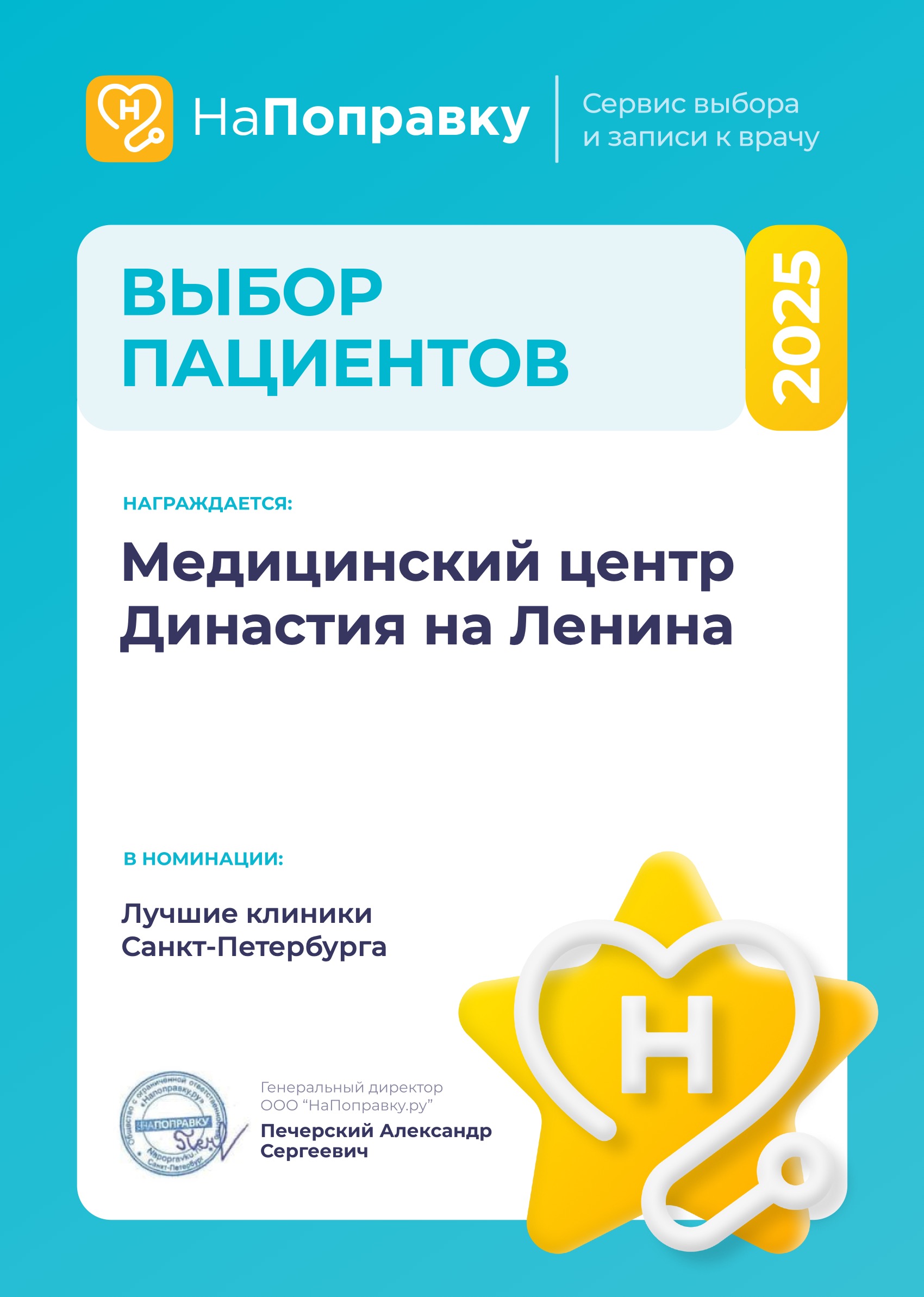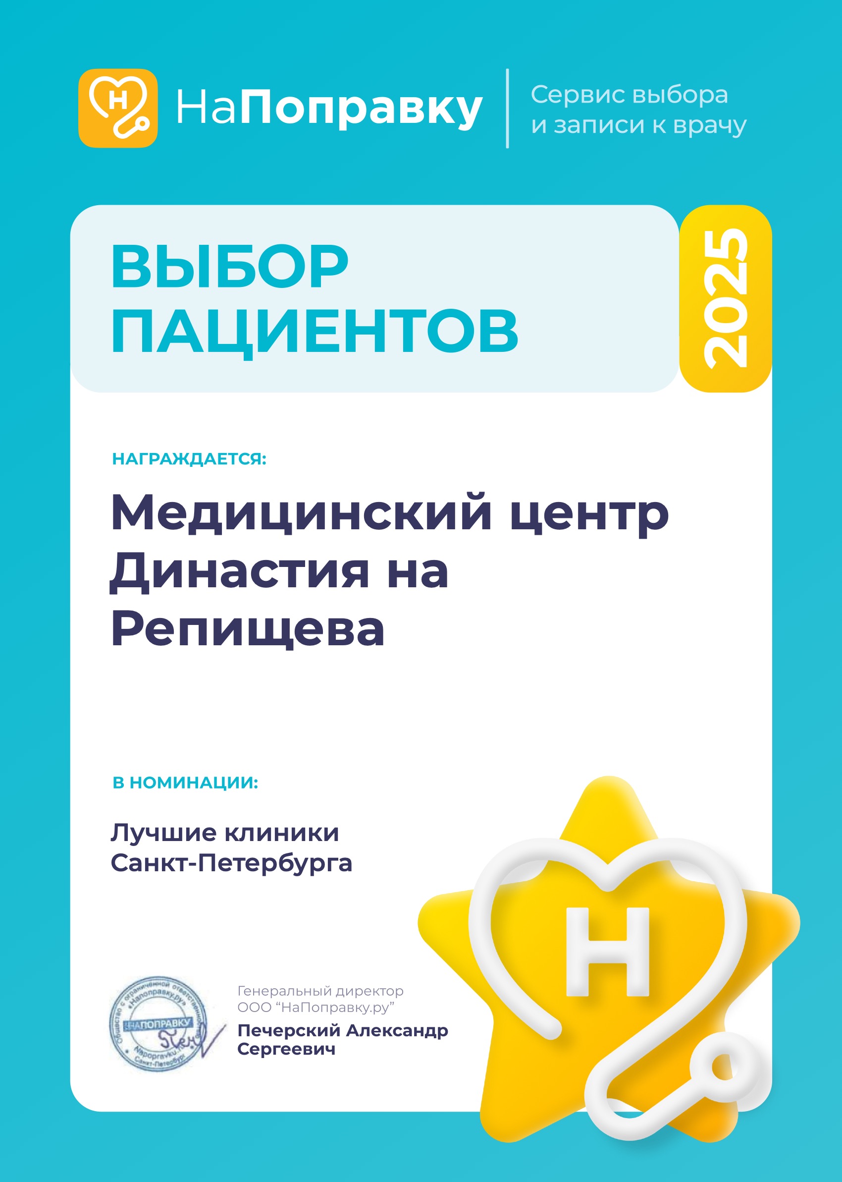 Оператор свяжется с вами для уточнения деталей. Мы ценим Ваше обращение в сеть клиник «Династия».