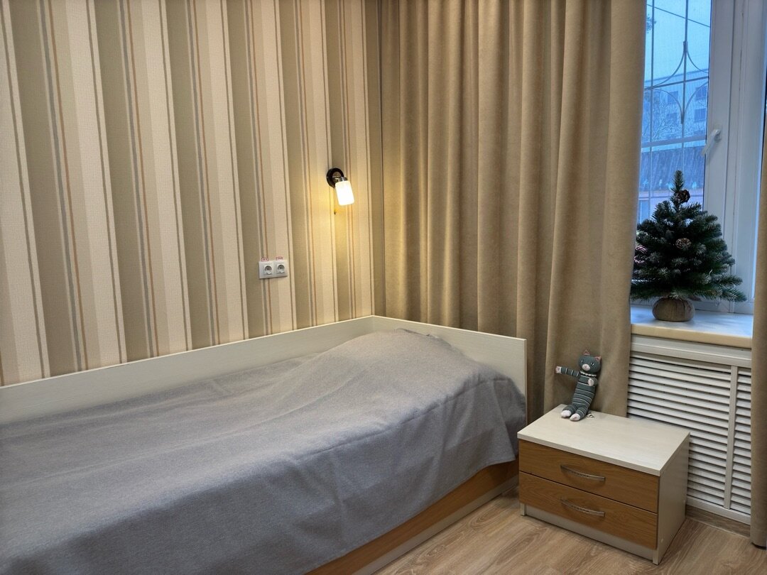Комфортный интерьер в мягких цветах поможет вам или близкому чувствовать себя почти как дома. А ещё мы регулярно убираем все поверхности внутри отделений стационара, чтобы пациентам было комфортно