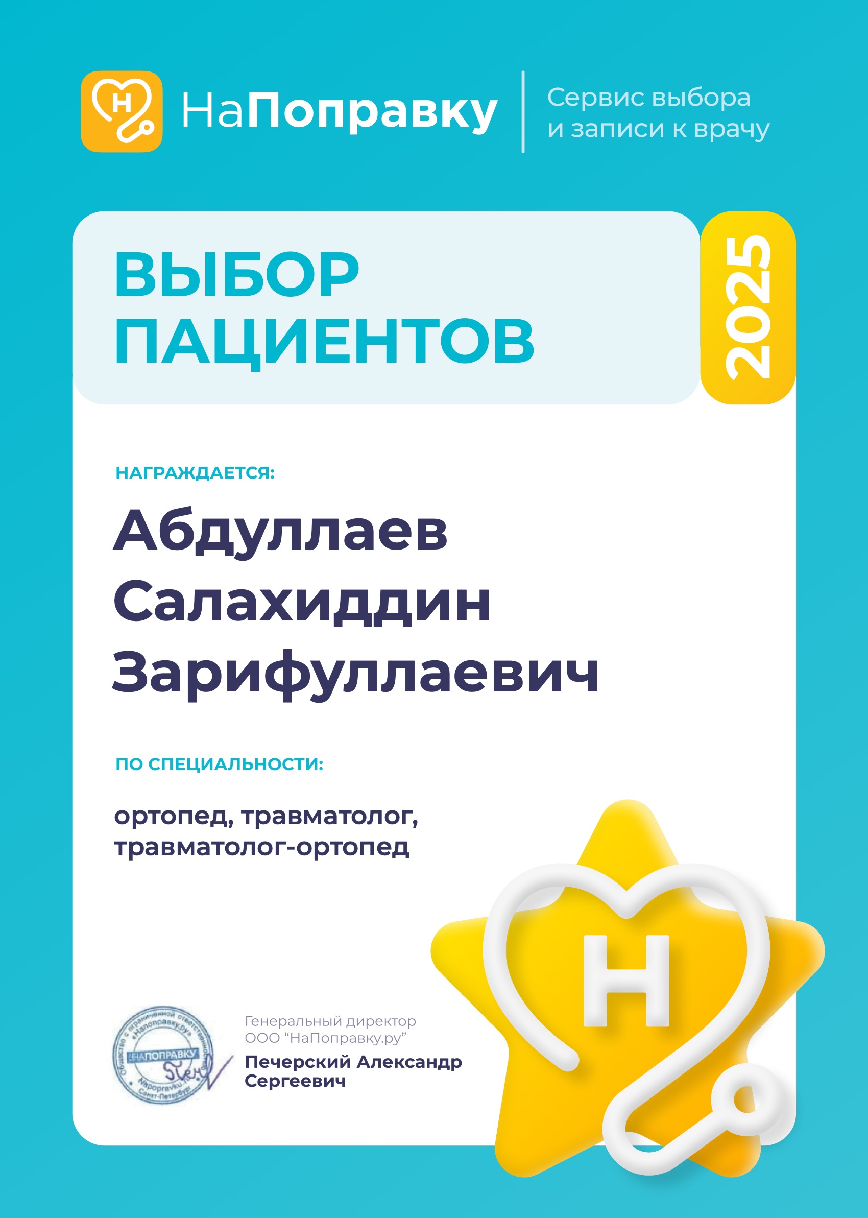 Здравствуйте, Марк Леонидович! Большое спасибо за отзыв и высокую оценку профессиональных качеств Салахиддина Зарифуллаевича. Желаем Вам здоровья!
