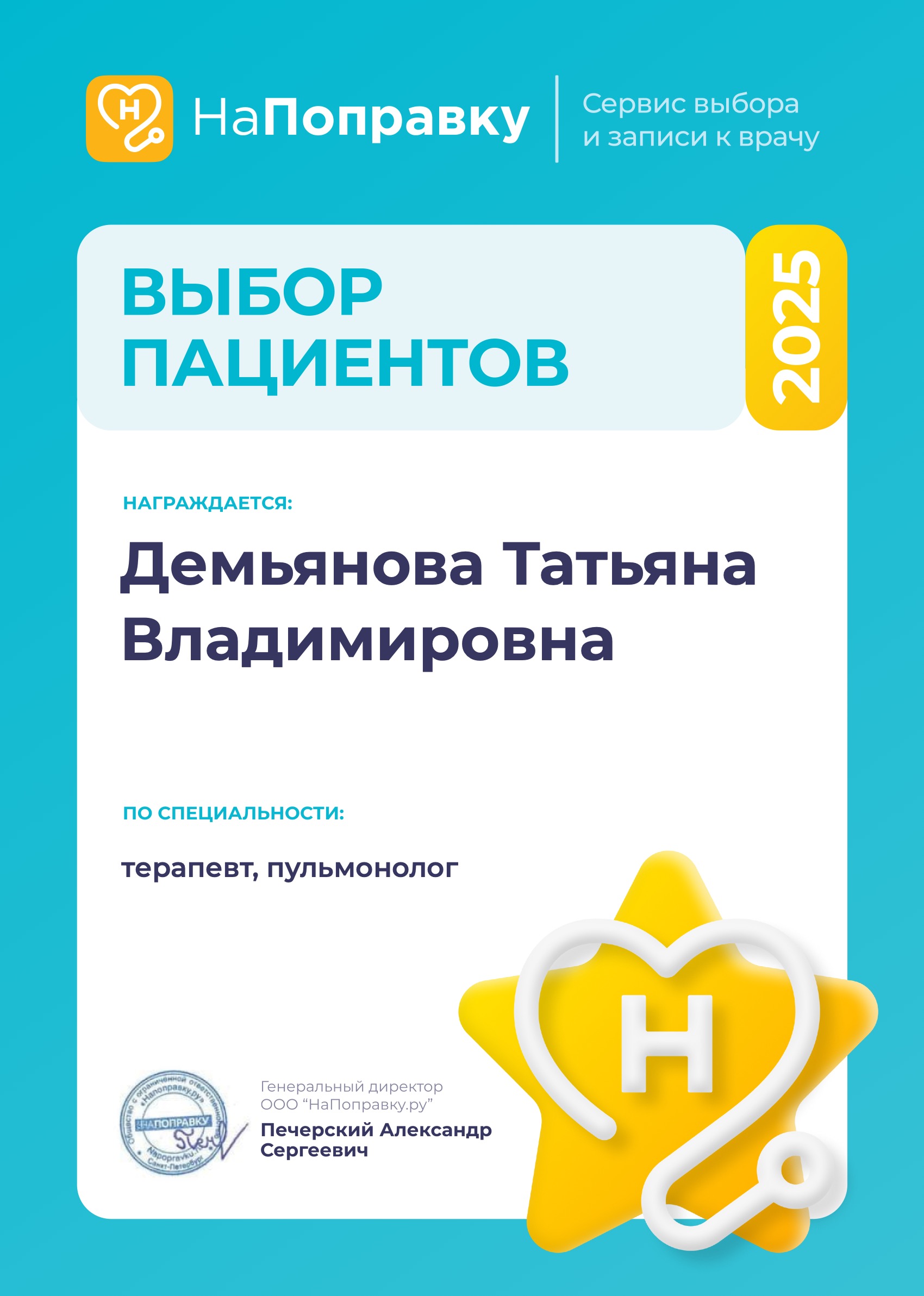 Я верю, что работа в медицине помогает делать мир лучше – люди выздоравливают, меняется их качество жизни. Это как цепная реакция – мое действие в виде улучшения здоровья запускает каскад улучшений во всех сферах жизни. Ведь если человек здоров, то ему все подвластно.