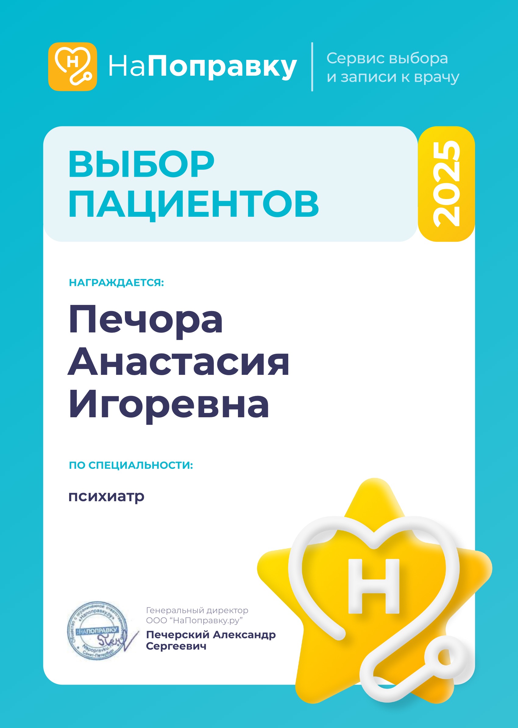 Хожу к Печора А.И. почти год. Все нравится! А в клинике очень уютно и дружелюбно❤️