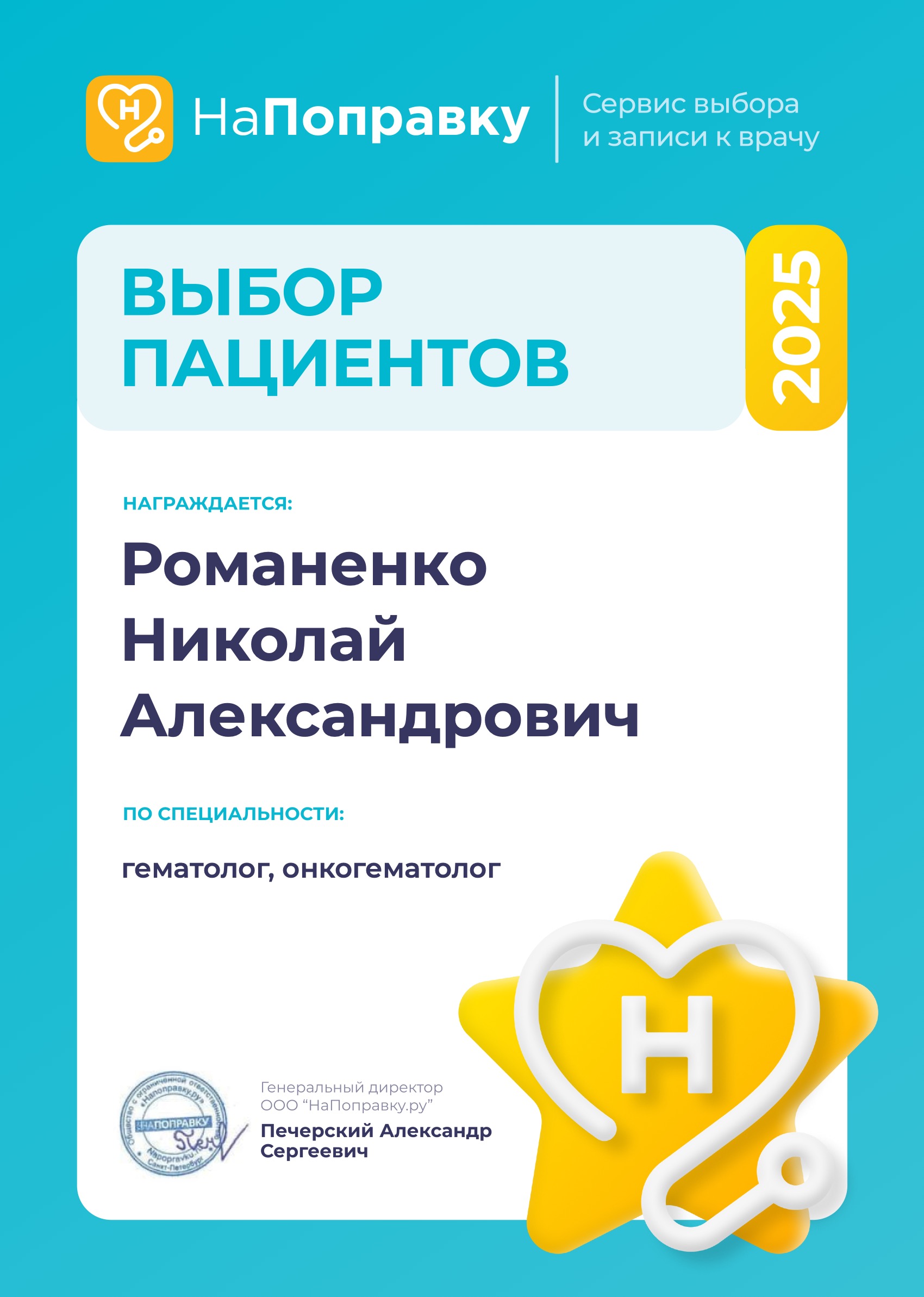 Николай Александрович Романенко - прекрасный врач, подробно собрал анамнез, внимательно осмотрел, дал рекомендации, самые приятные впечатления.
