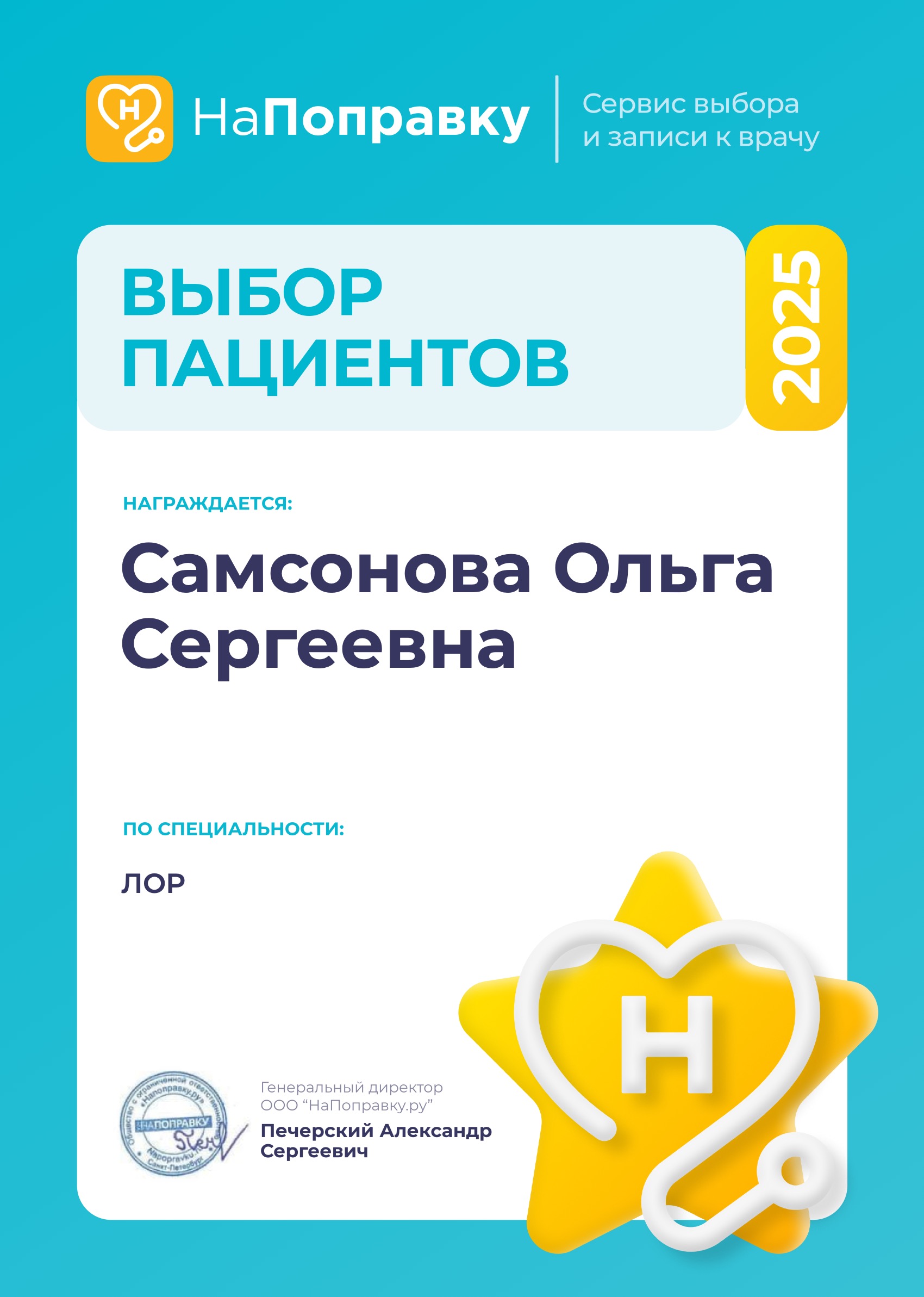 Была на приеме у Самсоновой Ольги Сергеевны ЛОРа, все было супер! Ольга Сергеевна внимательно выслушала и рассказала про мою ситуацию, стало спокойнее) Также расписала план действий в случае ухудшения болезни. Благодарю Ольгу Сергеевну за отличное отношение к пациентам, к таким хочется возвращаться ❤️ Еще в клинике отличный ремонт, очень приятная атмосфера!