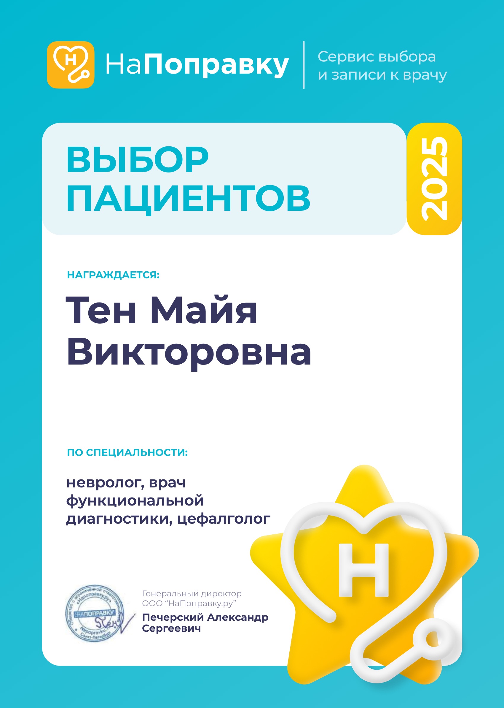 Спасибо Майе Викторовне Тен, неврологу данного медицинского центра, очень грамотный специалист.